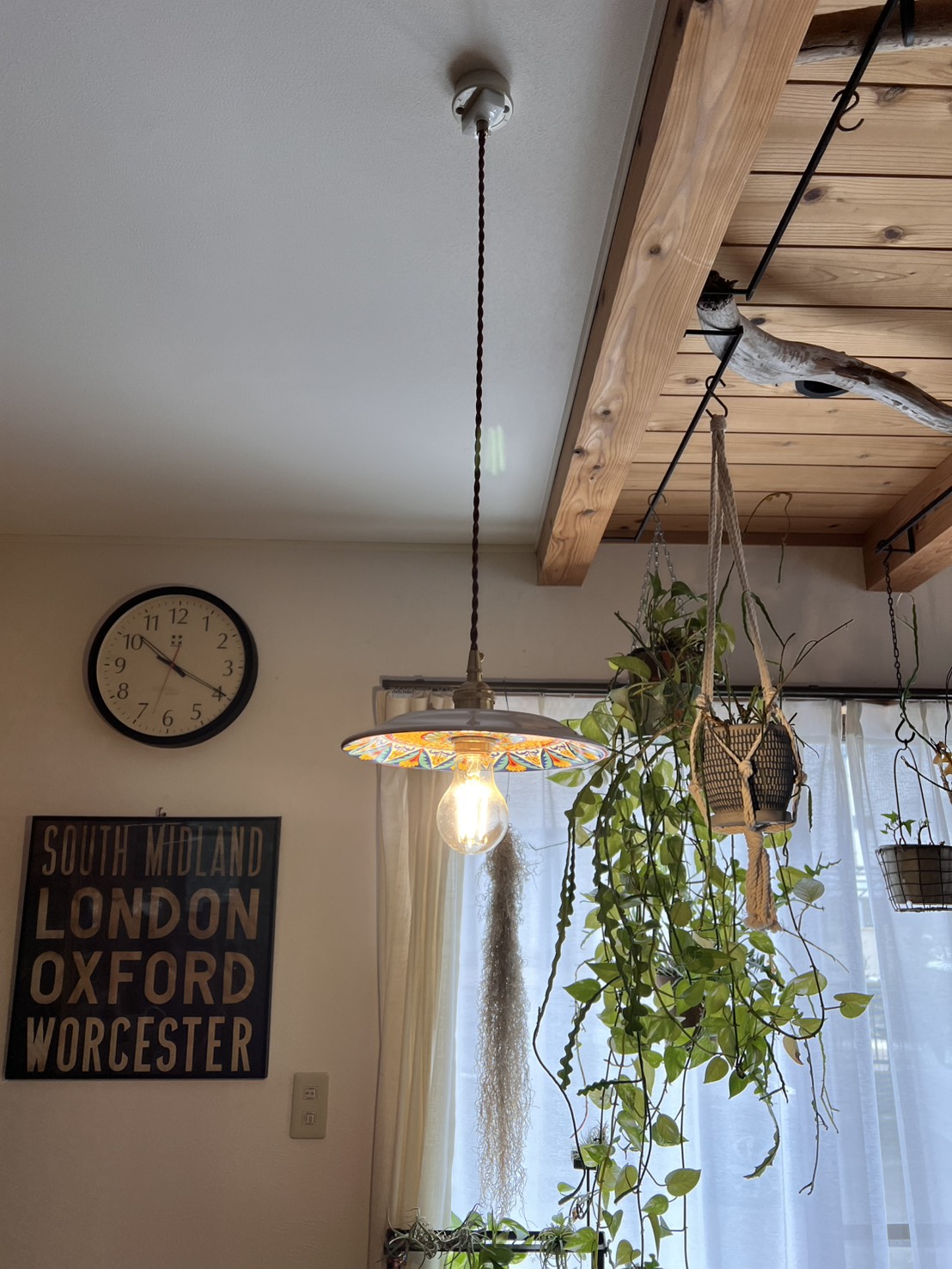 ヴィンテージ調のデザインでお部屋をおしゃれに演出。天井から優しく光を放ち、温かみのある空間を作り出します。手作りの一点ものとして、リビングやダイニング、カフェやレストランに最適。個性的で魅力的なデザインが、どのシーンでも特別なアクセントに。