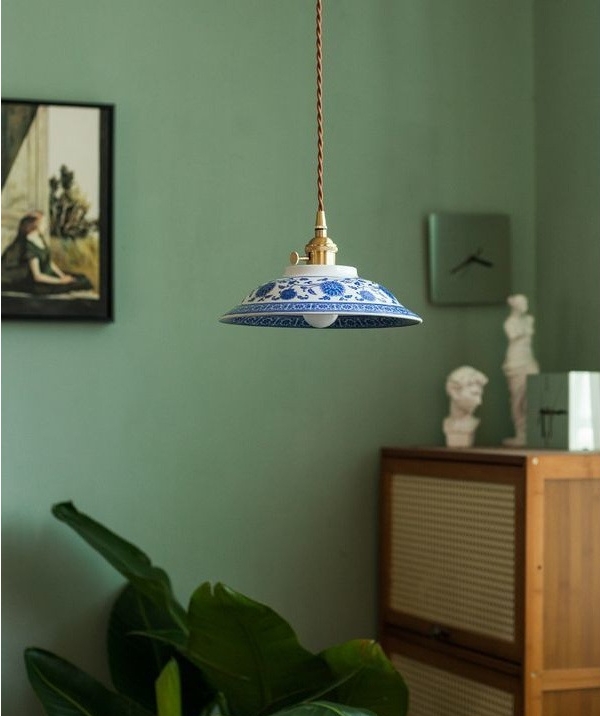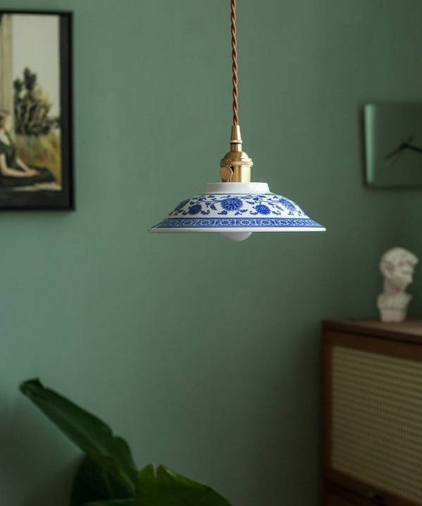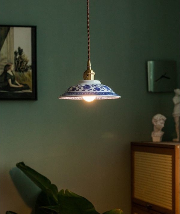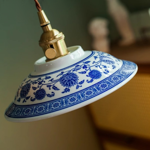陰影と風雅:低い位置に吊るし、テーブル面や壁に青花模様の影を落とすことで、和室、洋室を問わず、格式と詩情のある雰囲気を生み出します。