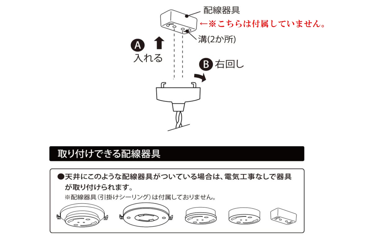 引っ掛けシーリング対応のため、工事不要で取り付け可能。