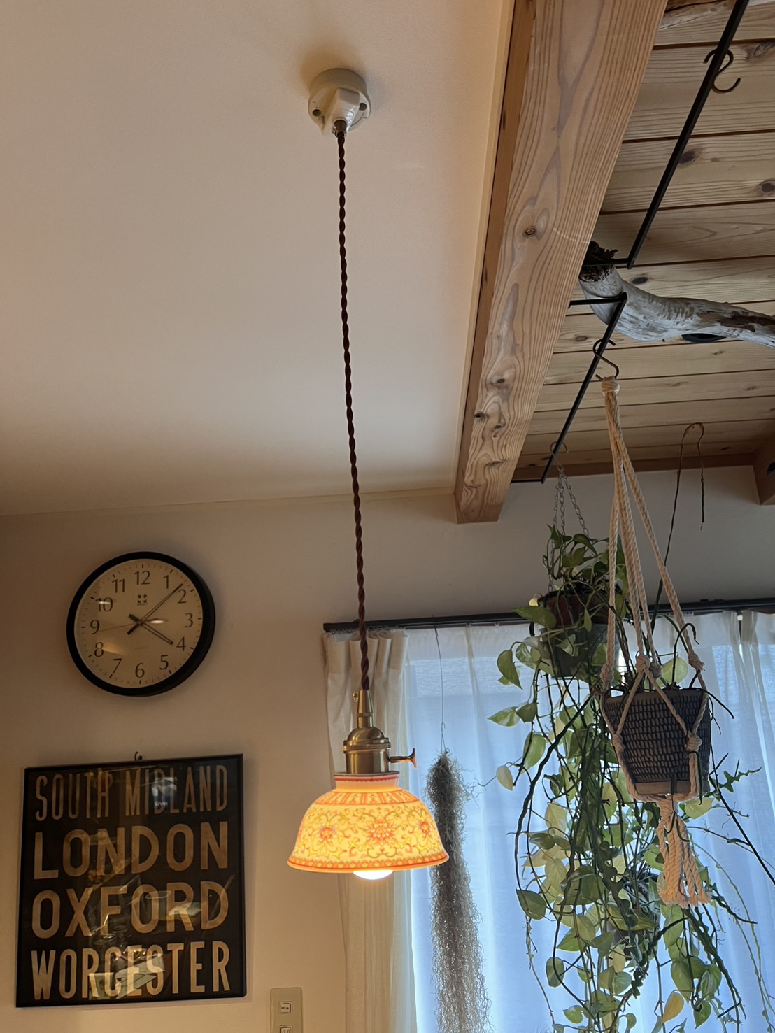 ヴィンテージ調のデザインでお部屋をおしゃれに演出。天井から優しく光を放ち、温かみのある空間を作り出します。手作りの一点ものとして、リビングやダイニング、カフェやレストランに最適。個性的で魅力的なデザインが、どのシーンでも特別なアクセントに。